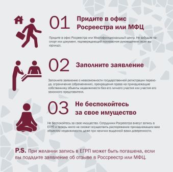 При подаче такого заявления в ЕГРН будет внесена соответствующая запись. Если за регистрацией сделки обратится представитель по доверенности, документы будут возвращены без рассмотрения, а правообладателя проинформируют, что с его недвижимостью пытались совершить соответствующие действия.