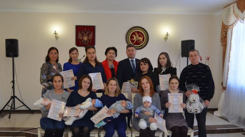В предверии “Дня матери” в рамках партийного проекта «Крепкая семья», 27 ноября в отделе загс исполнительного комитета в торжественной обстановке были вручены сертификаты на материнский капитал еще девяти семьям. Мамы шести мальчиков и трех девочек получили памятные подарки, приготовленные молодоженами. С этим торжественным днем молодых мамочек поздравили зам.руководителя исполкома по социальным вопросам Луиза Сафина, начальник отдела ЗАГС- Розалия Насибуллина, начальник ОПФ района –Ильгизар Валиахметов, пожелав семейного благополучия.