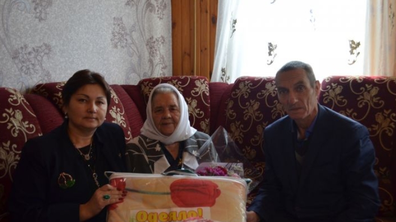 В связи с прекрасным юбилеем Гакифа-абы получила поздравительное письмо Президента РФ, поздравительную открытку главы района, букет и подарок.Заместитель руководителя районного исполнительного комитета Луиза Сафина, глава сельского поселения Физзат Миннуллин так же высказали свои добрые пожелания.