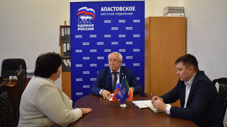 В рамках приемов населения, приуроченных к 18-летию образования Партии «Единая Россия» в Апастовской местной общественной приемной прошел прием населения. Прием провел Первый проректор К(П)ФУ Рияз Минзарипов.