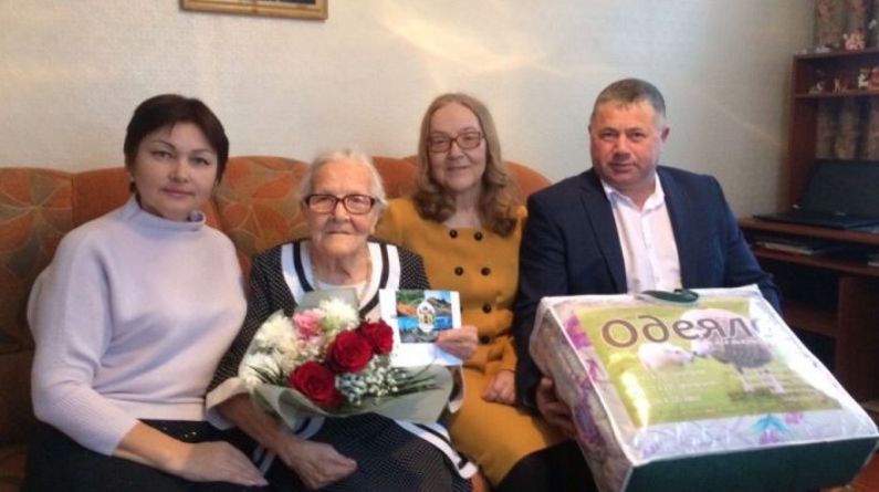 К поздравлениям родных и близких, соседей, друзей присоедилились и представители администрации района. Заместитель руководителя исполкома района Луиза Сафина тепло поздравила долгожительницу, передала ей Поздравительное письмо Президента страны, а также Поздравительную открытку, памятный подарок и букет цветов от имени главы района. Присоединился к поздравлениям и глава сельского поселения Рамиль Валиев.