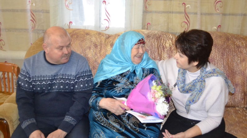 Юбиляру были вручены поздравительные телеграммы Владимира Путина и Равиля Хисамутдинова, благодарственное письмо, памятный подарок и цветы. Глава сельского поселения Тагир Хусаинов также вручил подарки, пожелал крепкого здоровья.
