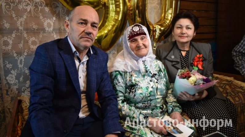 Шамсие Ахмадуллиной в честь 90-летнего юбилея вручили поздравительное письмо главы страны, поздравительную открытку главы района, подарок и букет цветов.поздравить юбиляра с почтенной датой приехалда заместитель руководителя исполнительного комитета Луиза Сафина.