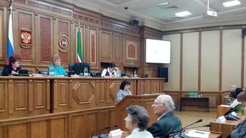 В здании Государственного Совета Республики Татарстан на заседании женщин-депутатов "Мэрхэмэт - Милосердие" прошла презентация социально-гуманитарного проекта "У войны не женское лицо".. На презентацию были приглашены Председатель Госсовета Фарид Мухаметшин, руководители объединений женщин-депутатов в муниципальных районах, представители республиканских министерств и ведомств, военных комиссариатов, общественных организаций. Провела презентацию заместитель Председателя Госсовета, руководитель объединения «Мэрхэмэт – Милосердие» Татьяна Ларионова. Апастовский муниципальный район на заседании представляла Глава Болҗшеболгоярского сельского поселения Апастовского района Зиля Сайфуллина.