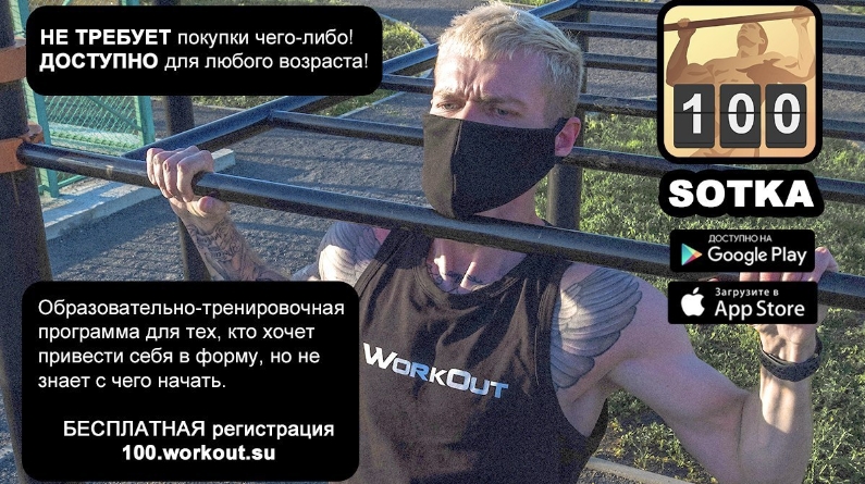 SOTKA: 100-дневный воркаут – это программа для тех, кто только начинает свои тренировки или возвращается к занятиям после долгого перерыва или травм. Главная цель программы - обучение и тренировка людей любого уровня подготовки. Мы собрали информацию из более чем 1000 источников, начиная со школьных учебников по биологии, химии и физике, и заканчивая самыми свежими публикациями в зарубежных научных журналах. Обработали, структурировали и представили в виде 100 дневного образовательного курса. Все, что нужно сделать Вам - применить эти знания.