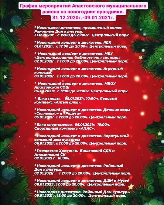 Новогодине концерты, праздничный салют, дискотеки и многое другое ожидают жителей района в эти новогодние каникулы. С расписанием мароериятий можно ознакомиться в нашей инфографике.
