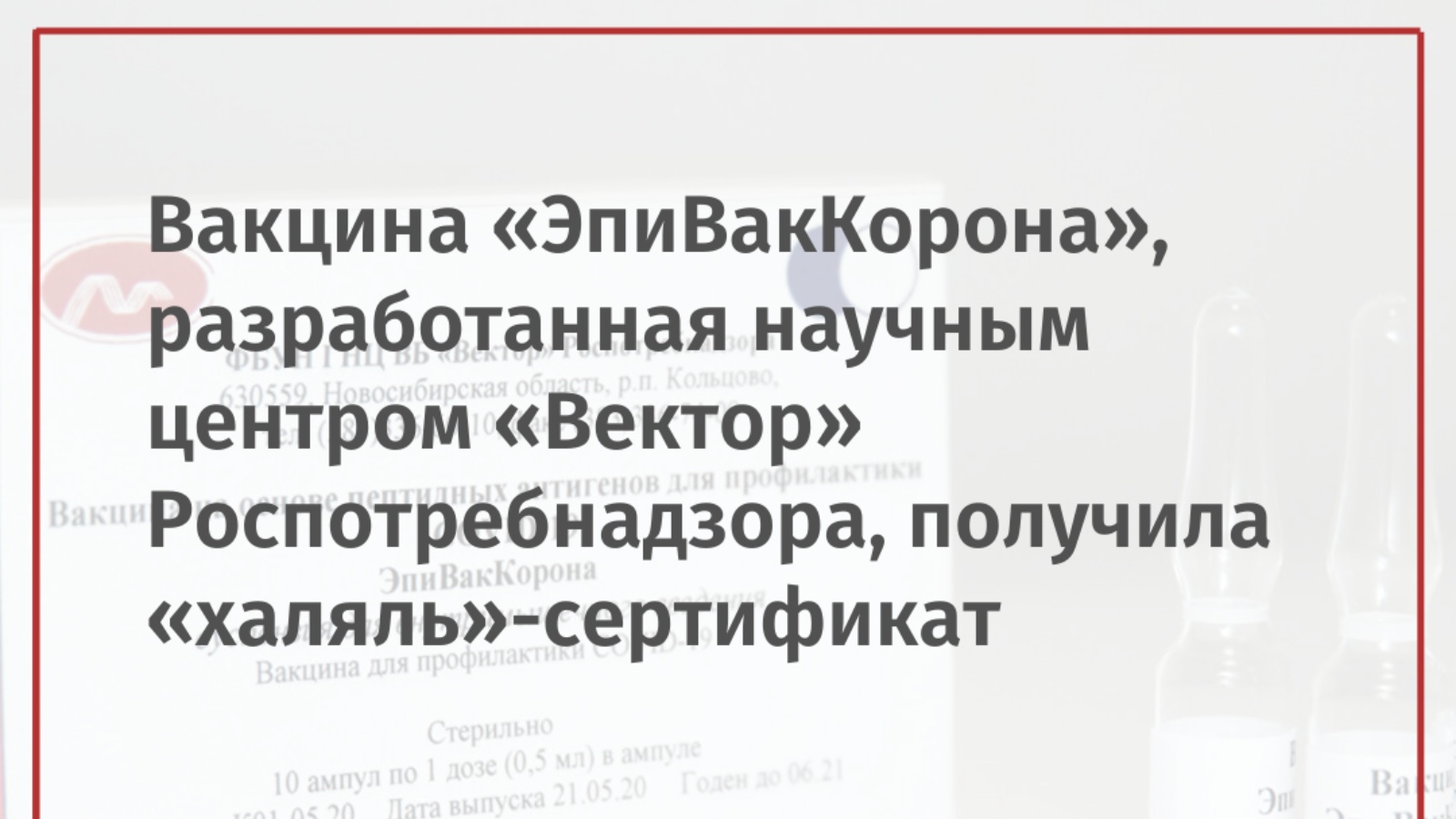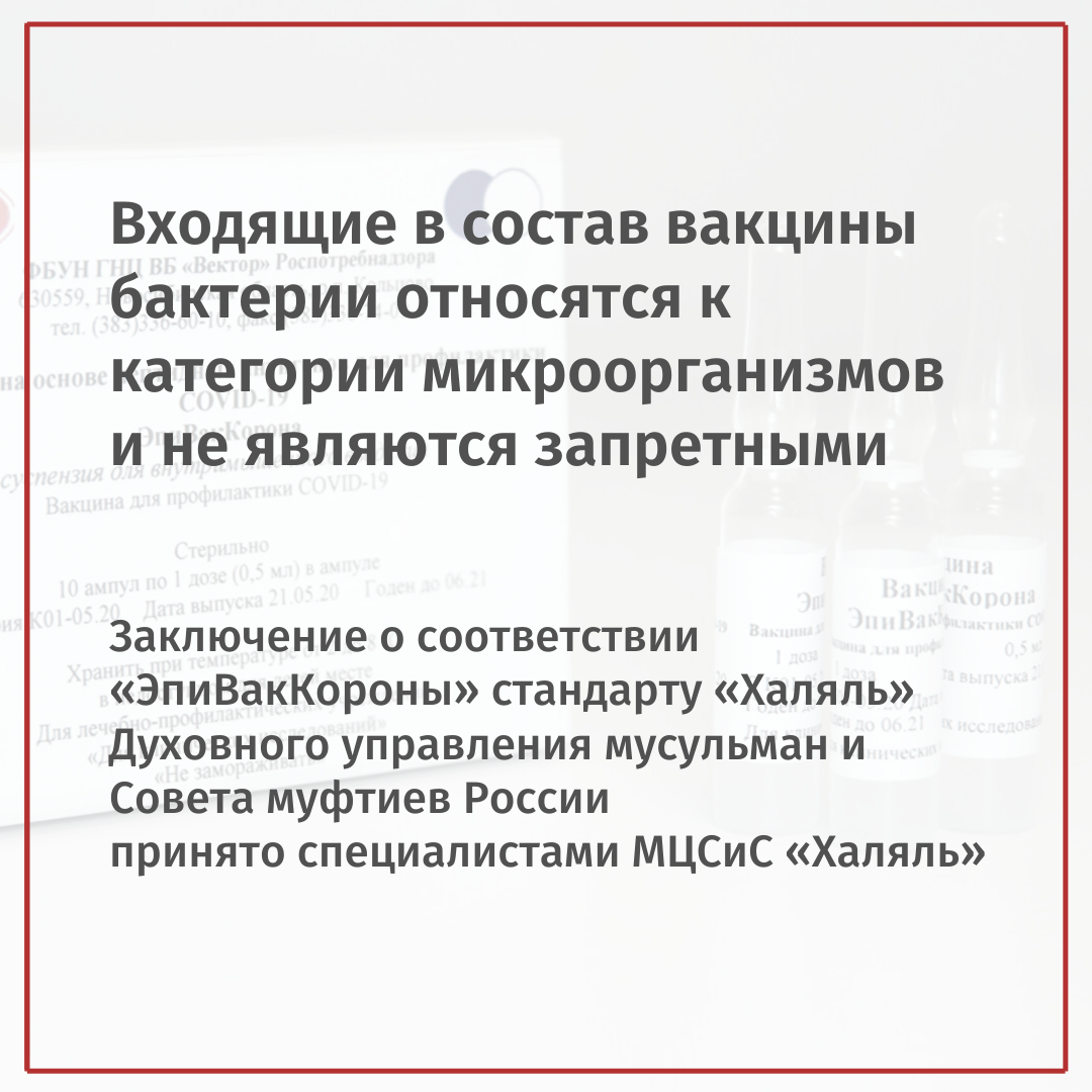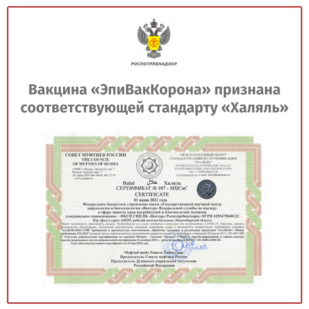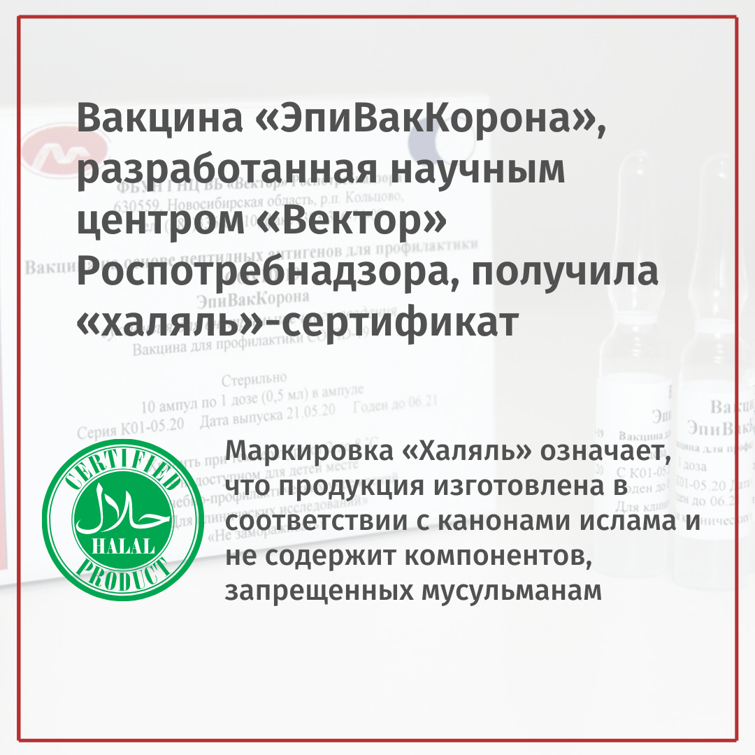Вакцина "ЭпиВакКорона" признана соответствующей стандарту "Халяль"