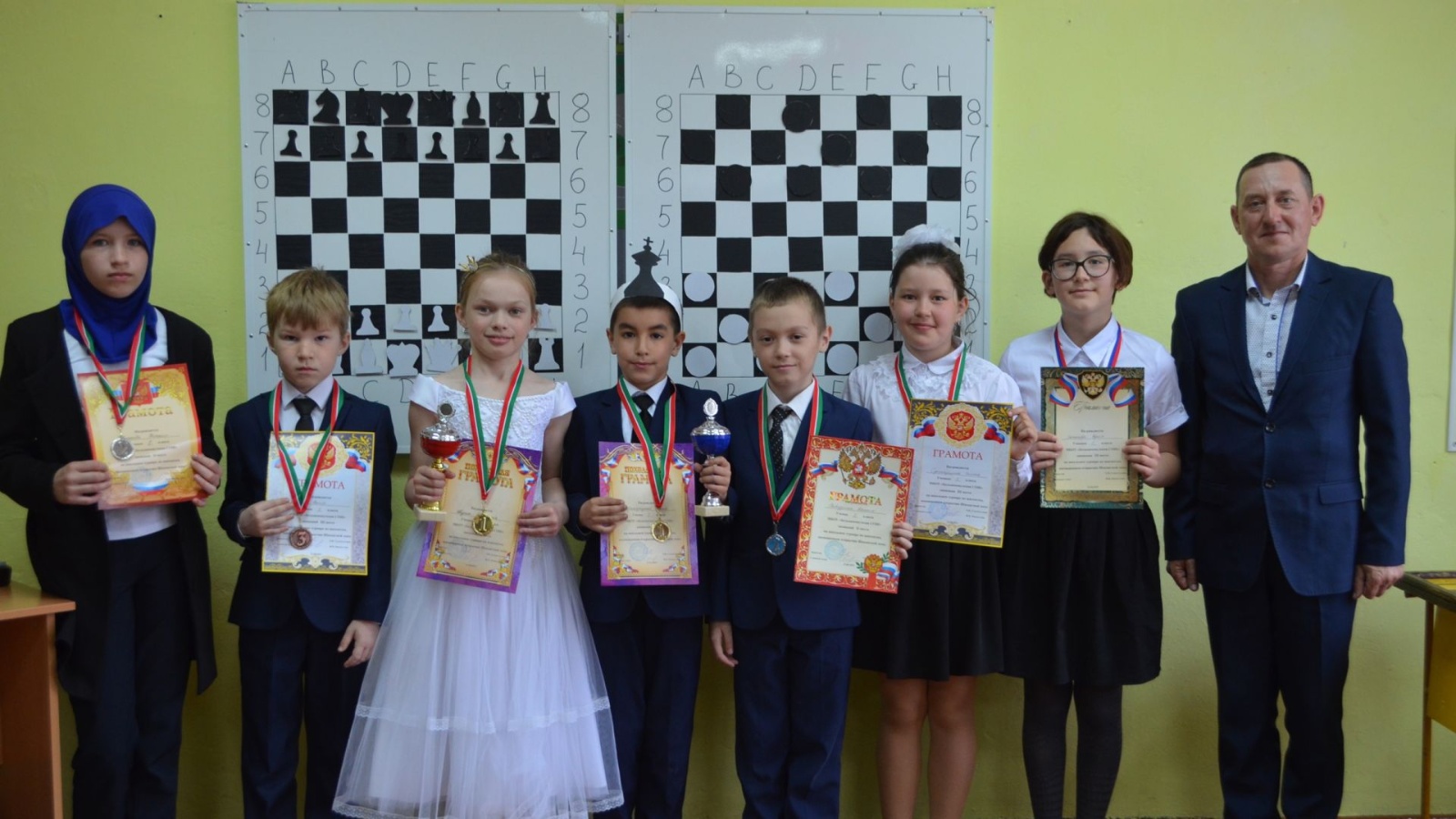 Торжественное мероприятие сопровождалось танцами и стихами, подготовленными учащимися и шахматным турниром, где для каждого участника был подготовлен подарок. Победители были награждены грамотами и медалями.