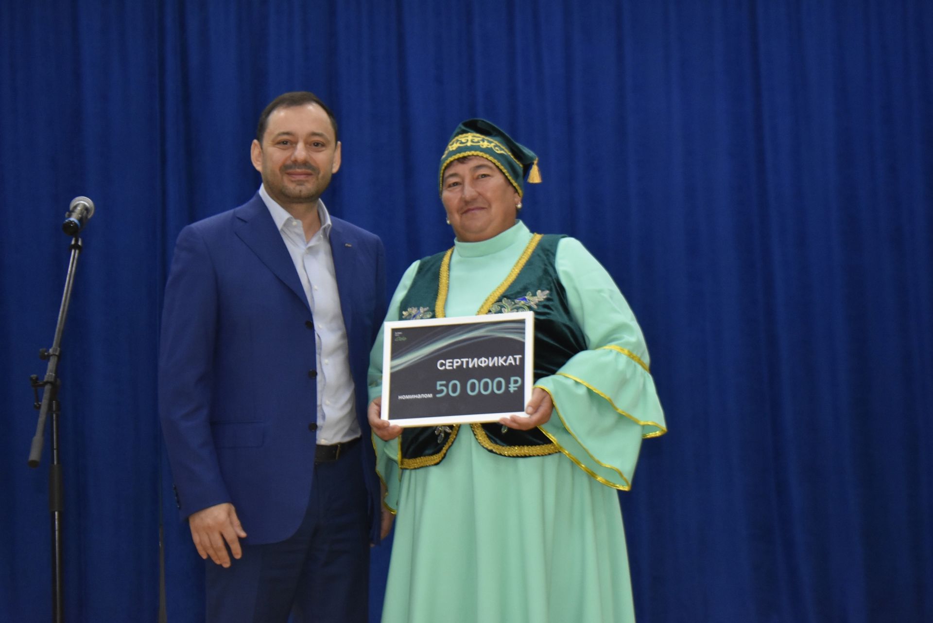Так же от правления “Ак Барс“ банка сельскому дому культуры был вручен сертификат на 50 тысяч рублей.