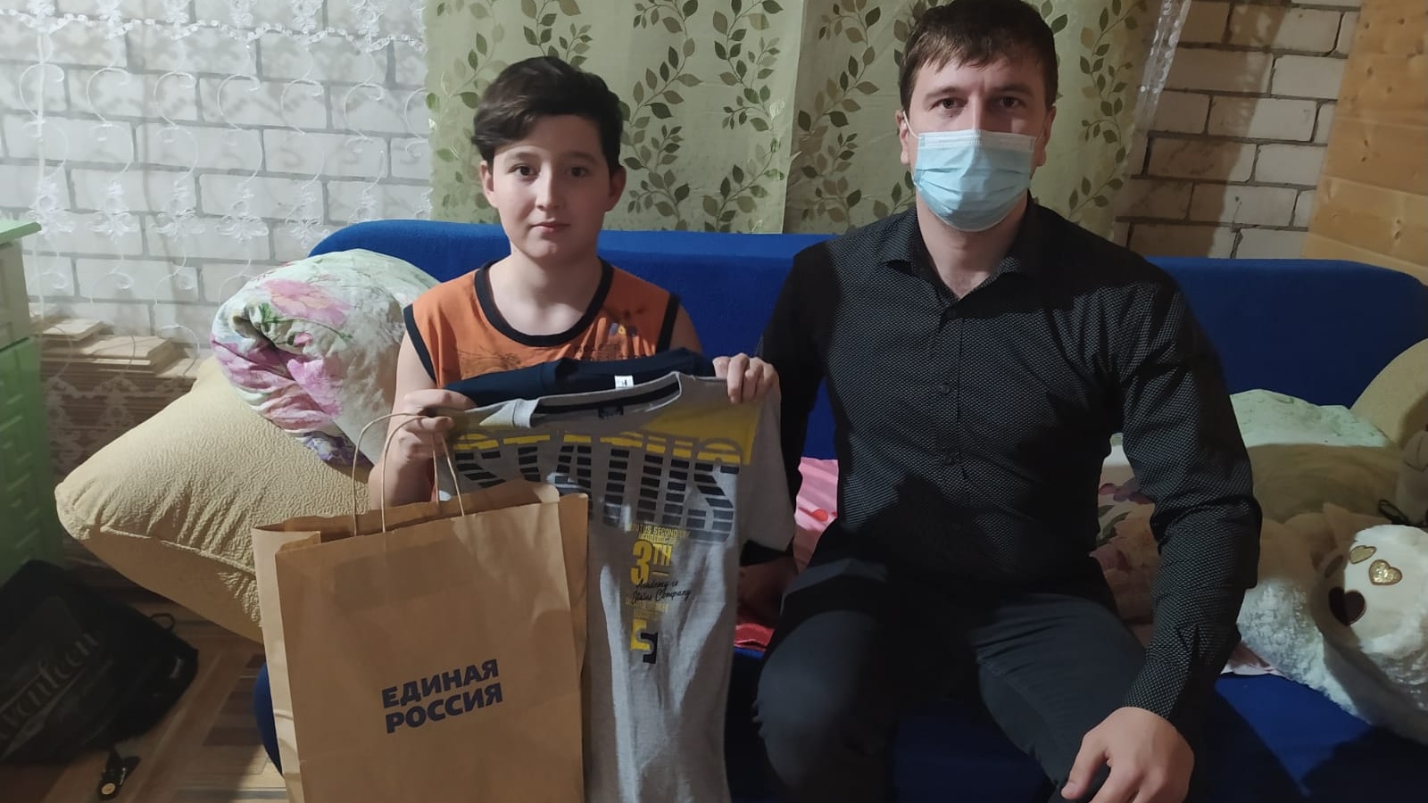 Данияру из пгт Апастово вручили футболки и кепку. Его желание исполнилось благодаря реализации акции "Ёлка желаний" и благодаря депутату пгт Апастово партии "Единая Россия" Ильдару Салаватову.