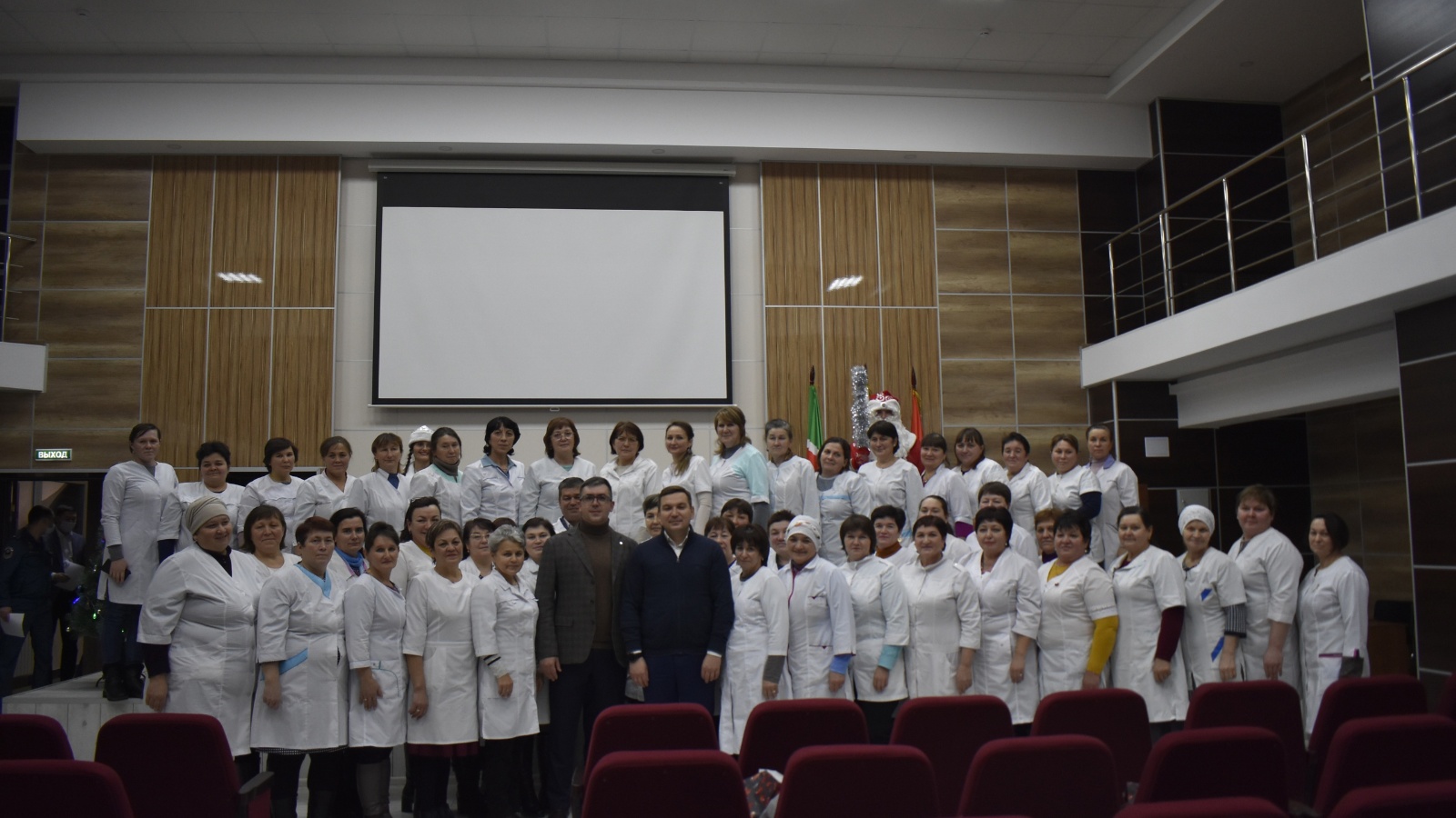 Затем Дед Мороз и Снегурочка вручили сестрам новогодние подарки. Работники культуры района подарили медработникам свои выступления.