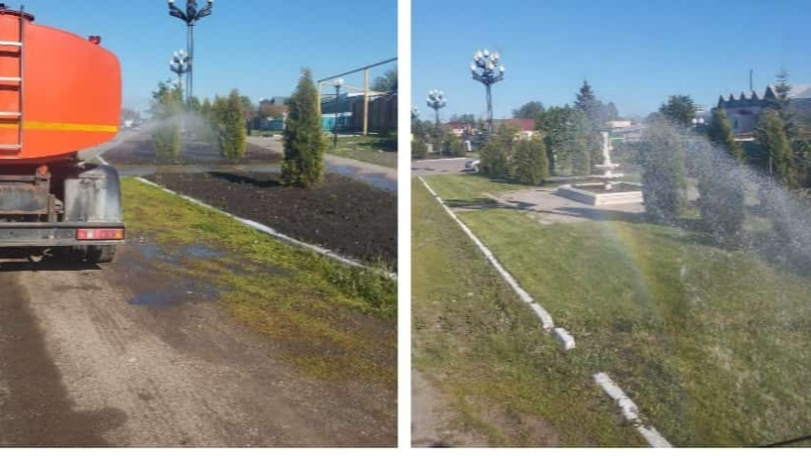 Работники ООО "Чиста район" с утра вышли на субботник по поливу газона и кустарников