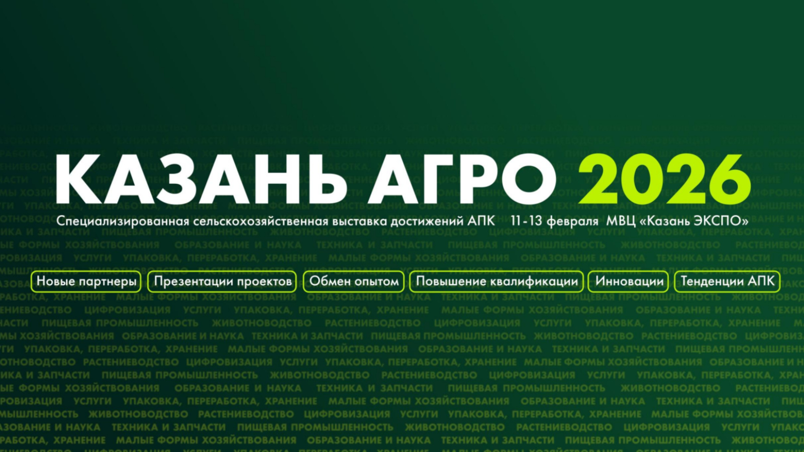 С 11 по 13 февраля 2026 года на территории Международного выставочного центра «Казань Экспо» состоится специализированная сельскохозяйственная выставка достижений АПК «Казань Агро – 2026», где примут участие более