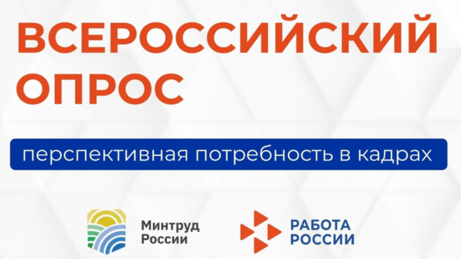 В соответствии с поручениями Президента Российской Федерации В.В. Путина1 Министерство труда и социальной защиты Российской Федерации на ежегодной основе организует Всероссийский опрос работодателей о перспективной потребности в кадрах. Опрос проводится в период до 1 июня 2026 г. на цифровой платформе ФГБУ «ВНИИ труда» Минтруда России по ссылке: https://prognoz.vcot.info/. Цель опроса – обеспечить высокую точность прогноза потребности отраслей экономики в специалистах, своевременно скорректировать образовательные программы и повысить эффективность подготовки квалифицированных кадров. Участие во Всероссийском опросе предоставит Вам важные преимущества: – точная оценка кадровой потребности организации; – комплексный анализ кадрового состава и возрастной структуры; возможность повлиять на определение специальностей и направлений подготовки, адаптированных к актуальным требованиям рынка труда. Во Всероссийском опросе 2025 года приняли участие и завершили опрос более 330 тысяч работодателей, более 23,7 млн работников. Проведение опроса курировали более 4,9 тысяч региональных и отраслевых модераторов. В каждом регионе определена команда: региональный куратор, региональный администратор, региональные ответственные исполнители, региональные отраслевые кураторы, кадровые консультанты, операторы контакт-центров для сопровождения и помощи в прохождении опроса. Предусмотрена консультационная поддержка в личных кабинетах работодателей на цифровой платформе ФГБУ «ВНИИ труда» Минтруда России https://prognoz.vcot.info/ и через контакт-центры региональных центров занятости. Для консультации работодателей по вопросам соотнесения наименований должностей и кодов Общероссийского классификатора занятий 1 Перечень поручений Президента Российской Федерации В.В. Путина от 16.08.2023 № Пр-1619 по итогам XXVI Петербургского международного экономического форума; перечень поручений Президента Российской Федерации В.В. Путина от 01.11.2023 № Пр-2192ГС по итогам расширенного заседания Президиума Государственного Совета Российской Федерации; перечень поручений Председателя Правительства Российской Федерации М.В. Мишустина от 25.12.2023 № ММ-П4-21451 по итогам стратегической сессии Правительства Российской Федерации по вопросу «Миграционная политика» специалистами ФГБУ «ВНИИ труда» Минтруда России разработана и запущена открытая автоматизированная система подбора кодов начальных групп занятий по ОКЗ для должности в штатном расписании, доступная на официальном ресурсе https://info.vcot.info/. В период опроса организована бесплатная программа обучения для участников Всероссийского опроса работодателей на цифровой платформе ФГБУ «ВНИИ труда» Минтруда России: https://edu-hr-prognoz.vcot.info/, участники получают электронный сертификат. В личном кабинете работодателя доступны обучающие материалы: Видеоинструкция по регистрации на сайте опроса и заполнению анкеты (https://vcot.info/s/tcxGpRI); Инструкция по регистрации на сайте опроса и заполнению анкеты; Типичные вопросы и ответы для работодателей; Методические материалы. Рекомендуется привлекать сотрудников кадровых подразделений и руководителей, ответственных за среднесрочное и долгосрочное планирование деятельности организации. Приглашаем Вас пройти опрос и укрепить кадровый потенциал Вашей организации, отрасли и региона!