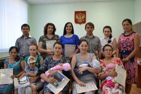 В ходе встречи были озвучены основные моменты использования материнского капитала. Так же освещена возможность подачи заявления о единовременной выплаты за счет средств материнского семейного капитала в размере 20 тыс.рублей. Каждая семья получила брошюру и памятку по основным вопросам программы.Закончилась церемония – традиционным общим снимком на память.