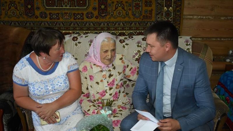 Главы района Ленар Хантимиров поздравив Фатиму апа, вручил юбилярше персональное поздравление от Президента России Владимира Путина, поздравительную открытку с букетом от главы района, и памятный подарок.