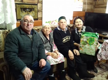 Глава района Рашид Загидуллин навестил проживающих в деревне Верхнее Балтаево Шауката абый и Рауза апа Хатыповых, передал им пакет с гостинцами от Деда Мороза. Пожилые с удовольствием встретили гостей.