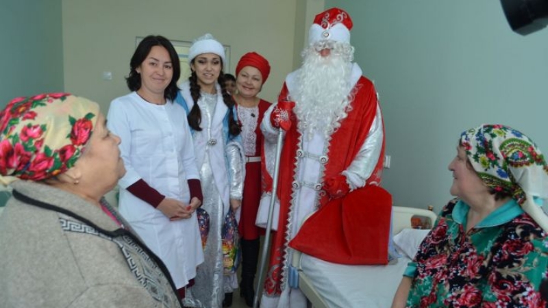Кыш бабай һәм Кар кызы аларның һәрберсе янында булып, бүләген бирде. Район башкарма комитеты җитәкчесе урынбасары Луиза Сафина, район үзәк хастаханәсенең баш табибы Алмаз Алиуллин хәлләрен сорашып, изге теләкләрен җиткерделәр. Дәваланучылар үзләре дә шигырьләр сөйләп, күңелләрен күтәрергә тырыштылар.