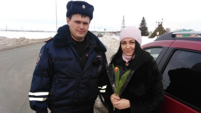 Апасның юл хәрәкәте иминлеге дәүләт инспекторлары бу көнне юлларга кулларына чәчәк тотып чыкты.