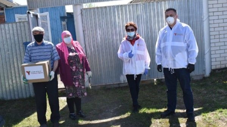 Республикабыз Президенты Рөстәм Миңнеханов чыгарган Карар буенча әлеге ярдәм районыбызга да килеп иреште. Пакет җыелмалары махсус алдан төзелгән исемлек буенча таратылды. Күчтәнәчләрне зур фургонлы машинадан, иң элек, чылбыр рәвешендә төзелеп социаль яклау хезмәткәрләре, “Яшь армиячеләр”, волонтерлар хәрәкәте вәкилләре бушатып тордылар. Аларны район үзәгеннән авыл җирлекләре башлыклары килеп алды.