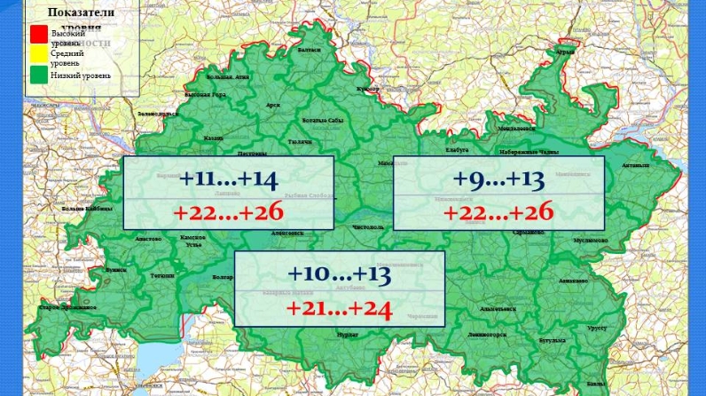 «Татарстан Республикасы гидрометеорология һәм әйләнә-тирә мохитне мониторинглау идарәсе» ФДБУ мәгълүматы буенча 25 августка Татарстан Республикасы буенча уңайсыз метеорология күренешләре фаразланмый: