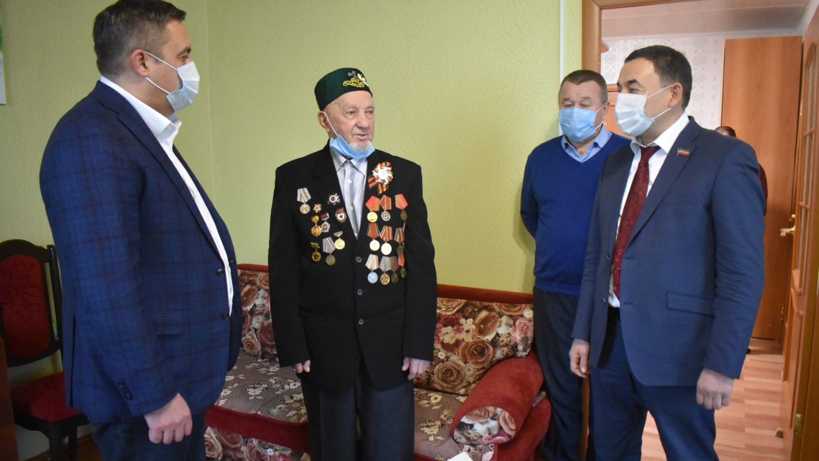 Район башлыгы Равил Хисаметдинов һәм Казан шәһәрендәге “Апас” якташлык җәмгыяте җитәкчесе Марат Нуриев Үтәмеш авылында гомер кичерүче Хәертдин абый Сәлахов һәм Багыш авылында яшәүче Фәһим абый Фәсхиев янында булып, мөхтәрәм ветераннарны якынлашып килүче бәйрәм белән тәбрик иттеләр.