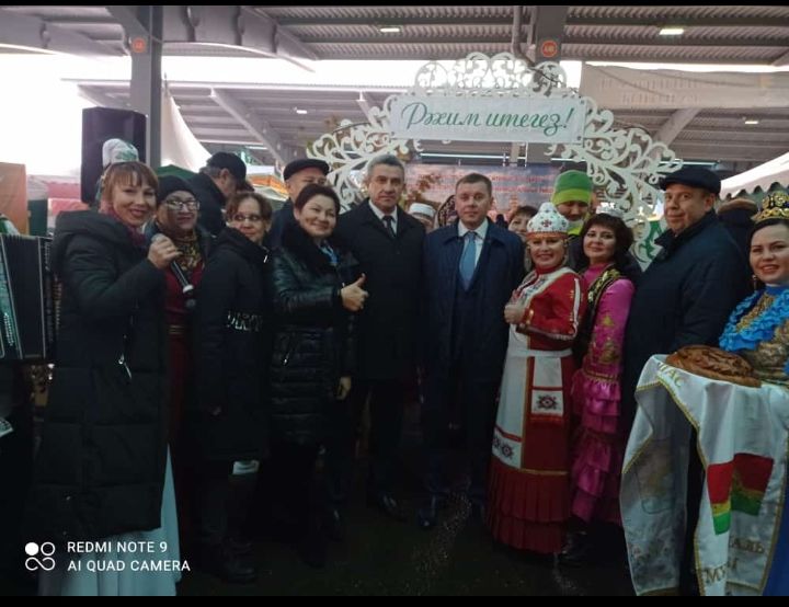 Район башлыгы Равил Хисаметдинов, Татарстан Республикасы Мәгариф һәм фән министры Илсур Һадиуллин, Татарстан Республикасы Премьер - министры урынбасары - авыл хуҗалыгы һәм азык-төлек министры Марат Җәббаров та безнең районның тәкъдим ителгән продукциясе белән танышты.