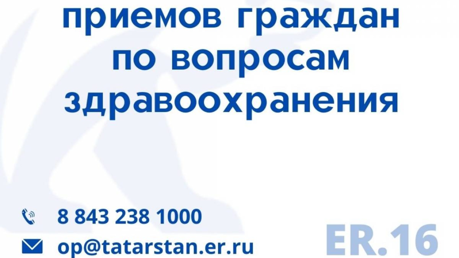 Сәламәтлек саклау мәсьәләләре буенча татарстанлыларны кабул итү атнасы 28 февральдә erpomogaet16 региональ иҗтимагый кабул итү бүлмәсенең инстаграм – Instagram да турыдан-туры эфир белән старт ала. Эфир кысаларында республикада коронавирус йогышы таралуга бәйле агымдагы вәзгыять турында фикер алышачаклар. Фикер алышу 14.00 сәгатьтә башлана.