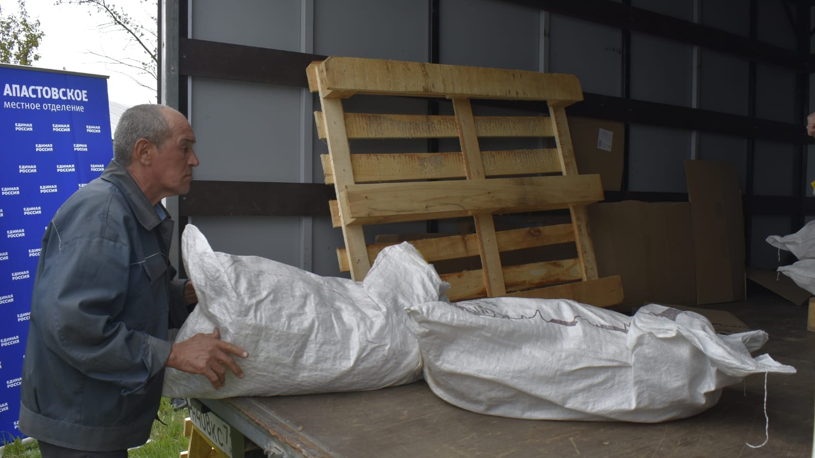 Район башлыгы Айрат Җиһаншин инициативасы белән Апас районында гуманитар ярдәм җыю игълан ителде. «Бердәм Россия» партиясенең Апас җирле бүлекчәсе базасында кирәкле продукция җыю оештырылды. Продукция җыюга «Бердәм Россия» партиясе депутатлары, район җитәкчеләре, район фермерлары, авыл җирлекләре башлыклары да кушылды.