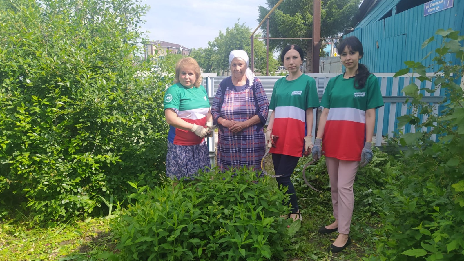 «Бердәм Россия» партиясенең җирле бүлекчәсе активистлары «Бердәм Россиянең Яшь Гвардиясе» әгъзалары белән берлектә районның волонтерлык эшчәнлегендә актив катнашалар. Бүген алар Лениза Хисаметдиновка 22 июньдә 87 яшь тула. Яшь балалар йорт яны территориясен чүп-чардан арындырырга булыштылар, чүп-чар ташладылар.