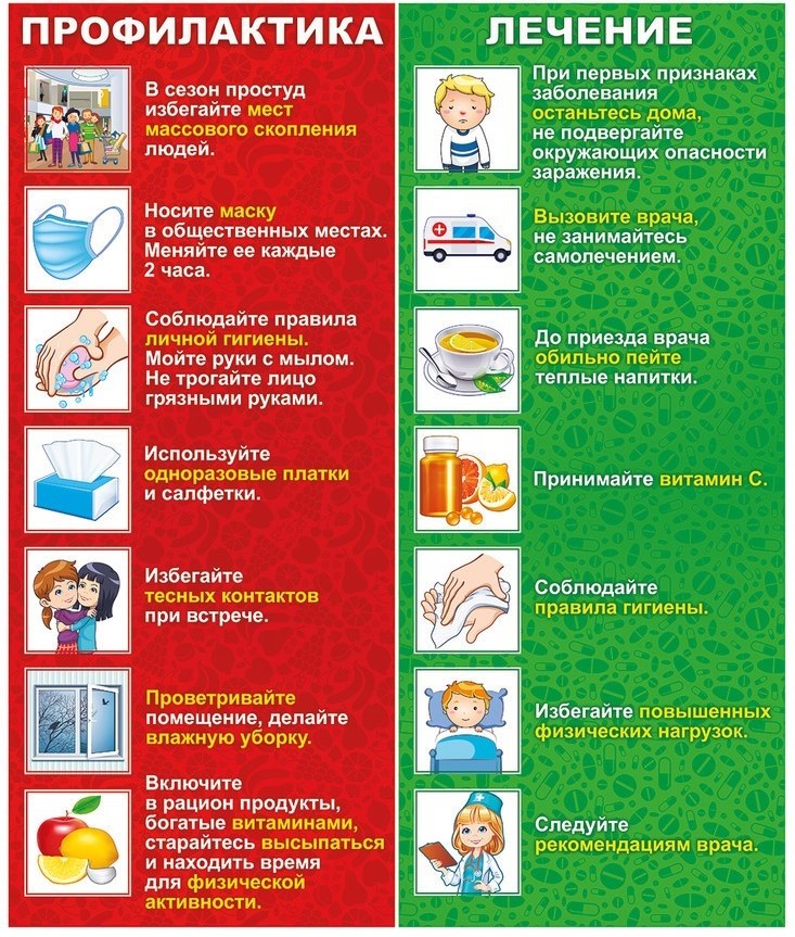 Хөрмәтле ата-аналар! Авыру балаларны балалар бакчасына, мәктәпкә, мәдәни-массакүләм чараларга җибәрмәгез. 38-39°С температурада участок табибын өйгә яки ашыгыч «ашыгыч медицина ярдәме " бригадасына чакырыгыз. Гадәттәгечә ешрак сыеклык кулланыгыз (чәй, морс, компот, сок). Йөткергәндә һәм чишкәндә авызыгызны һәм борыныгызны яулык яки сөртү белән каплагыз. Инфекция таралуны кисәтү өчен авыруны сәламәт кешеләрдән аерып куярга кирәк (аерым бүлмә бүлеп бирү Яхшы). Авыру булган урынны даими җилләтергә, көнкүреш әйберләрен, шулай ук идәннәрне дезинфекция чаралары белән сөртергә кирәк. Авыру белән аралашуны мөмкин кадәр чикләргә кирәк. Грипп белән авыручыларны караганда медицина битлеген (марле бинт) кулланырга кирәк.