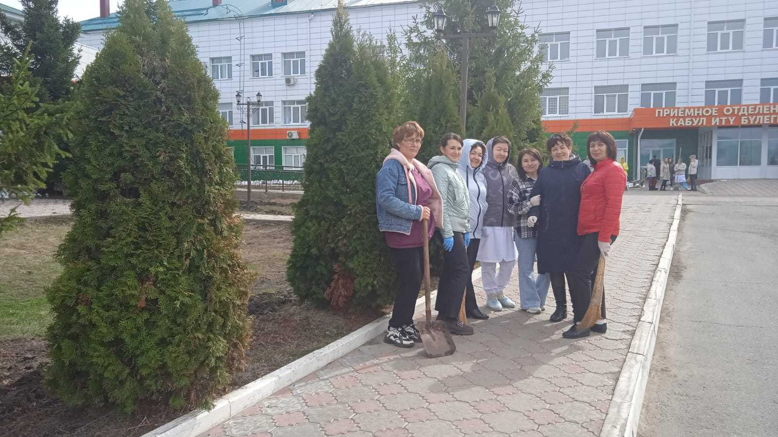 "Апас район хастаханәсе" ДАССО хезмәткәрләре экологик өмәгә чыктылар. Биналарга якын территорияләрне җыештыру буенча язгы чаралар уздырылды