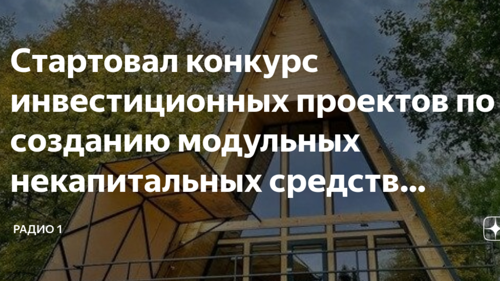 «Туризм һәм кунакчыллык» яңа милли проекты чараларын гамәлгә ашыру кысаларында Россия Икътисади үсеш министрлыгы 2025-2027 елларда Россия Федерациясе субъектлары бюджетларына модульле капиталь булмаган урнаштыру чараларын булдыру буенча инвестиция проектларына дәүләт ярдәменә федераль бюджеттан субсидияләр бирү өчен конкурс сайлап алу игълан итте. Сайлап алу 2024 елның 28 декабреннән 2025 елның 3 мартына кадәр бара.
