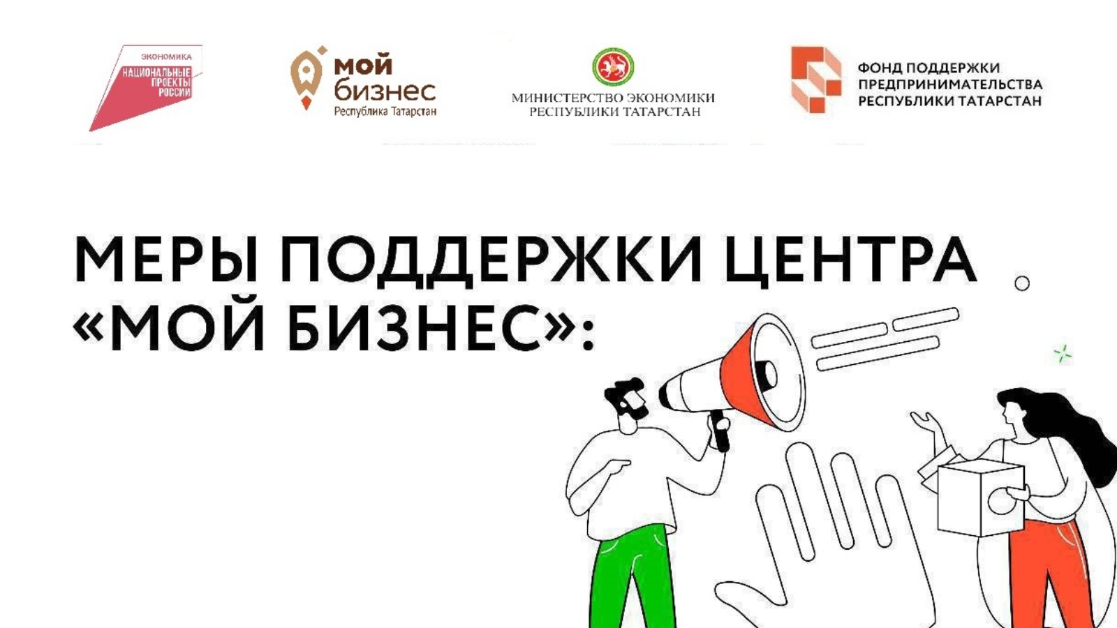 «Минем бизнес» үзәге Татарстан Республикасы Икътисад министрлыгы ярдәмендә «нәтиҗәле һәм конкурентлы икътисад» милли проекты кысаларында түбәндәге чараларга гаризалар кабул итә башлады:
